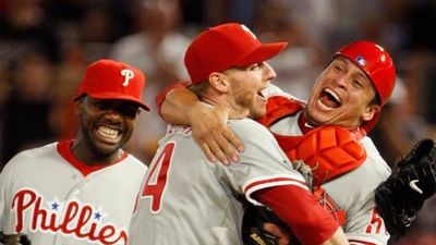 Bruntlett’s run tied the game, and then the relay took so long that speed demon Carlos Ruiz scored easily from first before the ball even got back to the infield dirt, with Ruiz delivering an emphatic but altogether unnecessary pop-up slide into home plate for the win. Then the Phillies proceeded to murder Jimmy Rollins, because that’s what happens on huge walkoff hits.